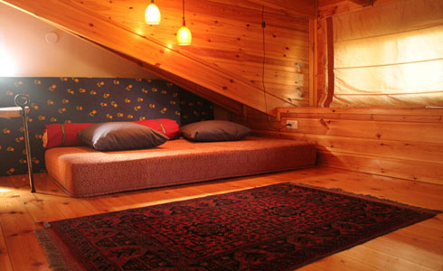 | הבקתות בנויות מעץ בסגנון סקנדינבי, מרווחות במיוחד וניתן לארח בהן עד ששה נופשים. בכל בקתה תוכלו ליהנות ממיזוג מרכזי עצמאי, ג'קוזי מרווח, טלוויזיה בלווין, מערכת קולנוע ביתית, סלון מעוצב, חדר שינה, מטבחון מצויד היטב הכולל את כל כלי האוכל, טוסטר אובן ומקרר וכמובן ערכת קפה עם שלל סוגי תה וקפה מפנקים. הגלריה גבוהה, מרווחת ומעוצבת בהתאם לסוג האירוח: לילדים פינת מזרנים וכריות צבעוניות ולזוגות – פינת ישיבה מעוצבת המשקיפה מלמעלה אל הנוף ההררי הירוק. |