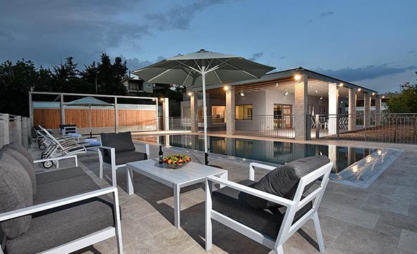 הווילה של שילובים בטבע שוכנת במתחם נפרד, מגודר ופרטי לחלוטין ומתאימה לאירוח בסטייל למשפחות גדולות ולקבוצות. כמו הבקתות, גם הווילה טובלת בנופים גלילים ירוקים ומציעה רף פינוקים גבוה במיוחד. בווילה יש חמישה חדרי שינה מעוצבים עם מיטות גדולות ונוחות במיוחד, לכל אחד מהם צמוד חדר רחצה. במרכז הווילה יש סלון רחב ידיים ומעוצב בקפידה, ובו פינת ישיבה, טלוויזיה עם מסך ענק, מערכת קולנוע ביתית וחלונות ענק שמשקיפים לנוף. בצמוד יש מטבח גדול ומצויד היטב, המתאים להכנסת ארוחות רבות משתתפים, ופינת אוכל עם שולחן גדול. החצר הגדולה הצמודה לווילה מכילה כל מה שצריך לבילוי משותף – הווילה מוקפת במדשאות רחבות ועצי פרי, ובחצר יש בריכת שחייה גדולה, מחוממת ומקורה הבנויה מאבני פסיפס ושיש, ג'קוזי ספא גדול ממדים, שולחן פינג פונג ומתקן ברביקיו. בימים יפים אפשר לאכול את הארוחות בשולחן האוכל הגדול שתחת הפרגולה.