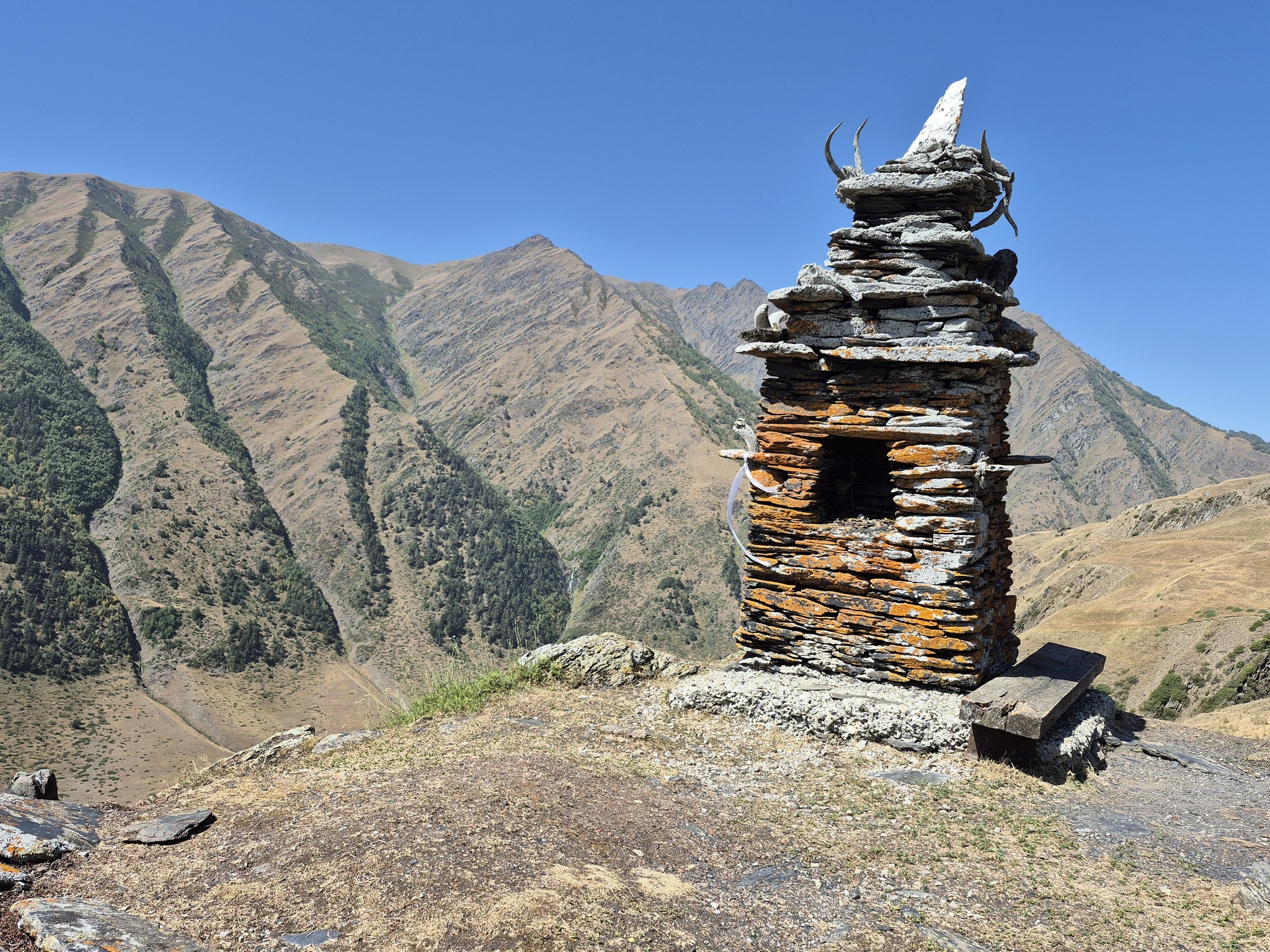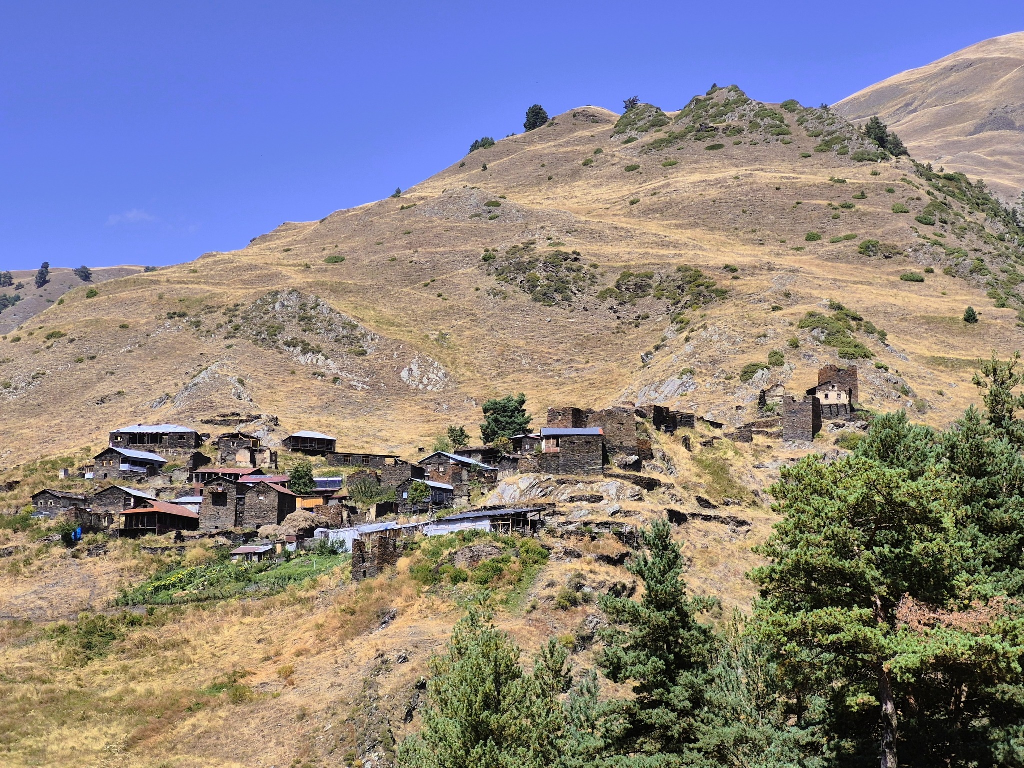 בכפר דנו (Dano) פגשתי חבורת גברים גיאורגים שהגיעו מטביליסי לרכיבה על סוסים. הם עברו והצטלבו על האוכף ליד מזבח הכפר המקושט בשלל קרניים, קרני אייל מסועפות, קרני צבאים, קרני עיזי בר קטנות וקרני כבשי בר עצומות. מגדל הכפר התמוטט זה מכבר והותיר אחריו שריד דמוי שן בינה עם חור גדול פעור בה.