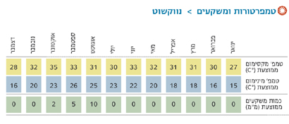 אשרות ושגרירויות לישראל אין יחסים דיפלומטיים עם מאוריטניה. ישראלים זקוקים לאשרת כניסה למדינה. איך להגיע אין טיסות ישירות בין ישראל ומאוריטניה. אפשר להגיע למאוריטניה בטיסה מפריז בצרפת או מקזבלנקה במרוקו. אפשר להגיע גם דרך היבשה במעברי הגבול עם המדינות הסובבות את מאוריטניה- מאלי, מרוקו וסנגל. מתי להגיע התקופה הטובה ביותר להגיע למאוריטניה היא…