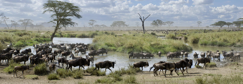 בשביל בעלי החיים, הגבול בין טנזניה לקניה הוא בגדר המלצה בלבד. מדי שנה הם יוצאים למסע בעקבות המזון, המתחיל במישורי הסרנגטי שבטנזניה, ממשיך לעבר מסאי מארה שבקניה ומסתיים בסרנגטי. וחוזר חלילה גנו וזברות חוצים את הנהר | צילום: אייל ברטוב יותר משני מיליון בעלי חיים משתתפים מדי שנה בנדידה הגדולה, שמתרחשת במערכת האקולוגית הענקית…