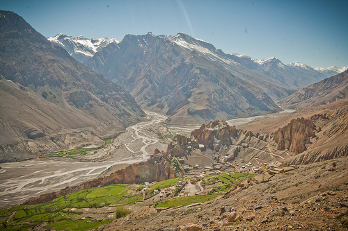 בתמונה הפותחת: עמק לאהול הירוק בין רכסי ההימלאיה הנישאים