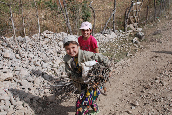 ילדות נושאות עצי הסקה. המפגשים לאורך הדרך הם שנותנים לטיול את הייחוד שלו | צילום: תומר בכר
