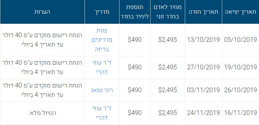 • טיסות תל אביב קהיר תל אביב (כולל מיסים: מבוסס על 161 דולר מס ביום פרסום המסלול. שינוי בערך זה ישפיע על מחיר הטיול הכולל)