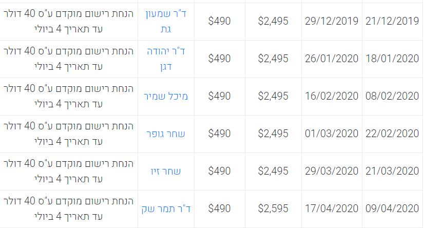עד 60 יום לפני היציאה יוחזר כל הסכום ששולם למעט 50 דולר דמי טיפול.