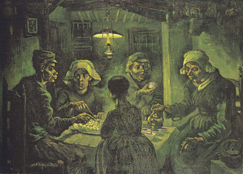 | ואן גוך נולד בדרומה של הולנד וגדל במשפחה עמלה ומאמינה. הציורים ההולנדיים שלו מוכרים הרבה פחות מיצירתו הים־תיכונית עזת הצבע, ושונים ממנה מאוד. התוגה והאמונה הנשקפות מהם הן אחת העדויות המרשימות לחיים הקשים ולעוני של איכרים בהולנד ובצפון אירופה במאה ה־19. הולנד שאנו מכירים (ראו חוברת "מטיילים", המצורפת לגיליון). היא ארץ שופעת חלב וקצפת, פרנסה ורמת חיים גבוהה. ציוריו של ואן גוך מאפשרים הצצה להולנד שלפני השפע הכלכלי של המאה ה־20. הולנד של ואן גוך קודרת, דוממת, אפורה, חומה, קשת יום, נזירית, צנועה ומחמירה במצוות הנצרות. ואן גוך של הולנד הוא אדם פגיע, דתי, שרוי בעומקה של האמונה, החושף את חיי האיכרים הפשוטים והמאמינים. ציוריו העמידו לדורות את מראה פניהם של תושבי הכפר. הנוף השטוח מעוטר בצריחי כנסיות, בגגות הקש הכבדים של בתי הכפר. עצי צפצפה בשלכת, רועה ועדר, או לחלופין – חוף ים שבו עוגנות סירות דיג הממתינות למסע הבא. ציורי טבע דומם של ספרי תפילה, כדי חרס, דגי הרינג. הנשים הרוקמות, תופרות ואורגות, תמיד בשביס בהיר על ראשן. איכרים מיובלי ידיים, נשות חוה בדרכן אל הכנסייה ביום ראשון. אפלולית החדר המואר בעששית ודלוּת המוצרים העולים על שולחן ארוחת הערב. גברים בקבקבי עץ, בבגדים פשוטים. עד גיל 27 הספיק ואן גוך, בנו של כומר פרוטסטנטי, להיות מורה לצרפתית, סטודנט ללימודים תיאולוגיים ושליח בקרב כורי פחם בבלגיה. נסיונו כמטיף בא לידי ביטוי בעיקר בעבודותיו המתבוננות באדם, שהמוּכרת בהן היא תמונת "אוכלי הבולבוסים". באביב 1886 עזב ואן גוך את הולנד, את האפלולית והדיכאון, את החורף הארוך ואת השמים הכבדים. אחרי כשנתיים בפריז, שם שהה עם אחיו תיאו, המשיך לדרומה של צרפת, אל הים התיכון, אל הצבעוניות העזה והשמש הבוהקת של פרובאנס. כתבה: איילת זהר