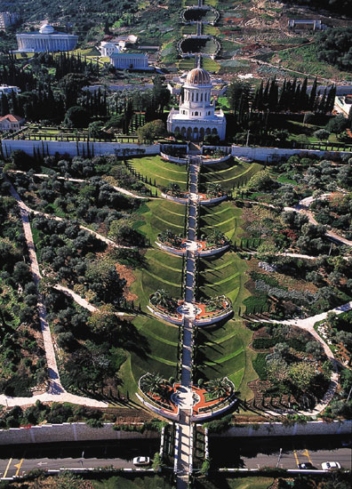 | הגנים התלויים מבטאים את רוחה של הדת הבהאית, שאסתטיקה היא חלק מרכזי בה | צילום: דובי טל |