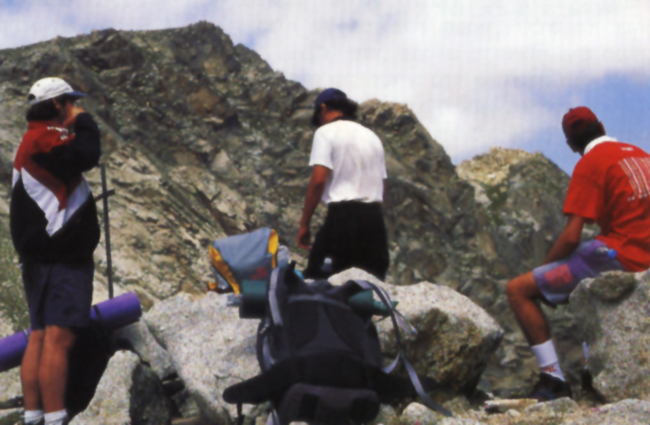 | מטיילים בפירנאים. החוצים את רכס הפירנאים לאורכו יכולים לבחור בין שלושה מסלולים: H.R.P שעובר סמוך לקו פרשת המים, שעובר סמוך לקו פרשת המים, GR11 הספרדי ו-GR10 הצרפתי | צילום: שמעון לב |